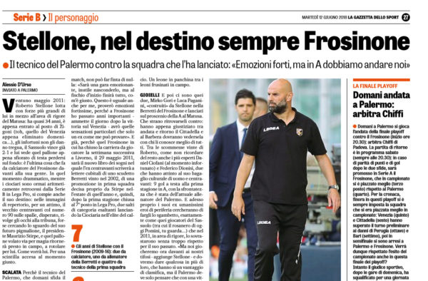 "Non c'è conflitto di interessi. E neppure emotivo. Anche se il cuore dell'attuale Frosinone batte ancora per merito di Stellone....