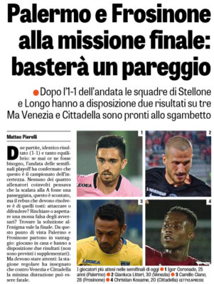 "È il giorno della verità per un Venezia che scende a Palermo con l'unico obiettivo di centrare il colpo grosso....