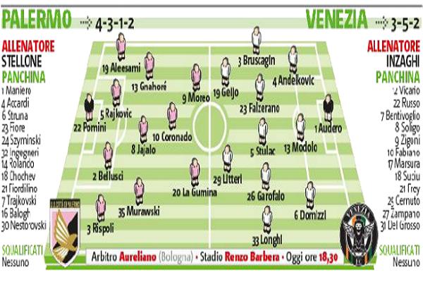 L'edizione odierna de "Il Giornale di Sicilia" ha riportato le probabili formazioni del match di quest'oggi tra Palermo e Venezia....