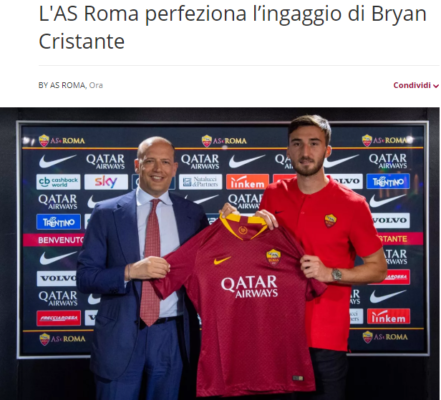 "Il club rende noto di aver raggiunto un accordo per la stipula di un contratto di acquisto a titolo temporaneo,...