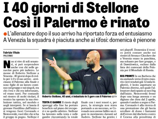 "La Gazzetta dello Sport" di oggi analizza l'operato di Stellone dal suo arrivo in Sicilia e in vista della semifinale...