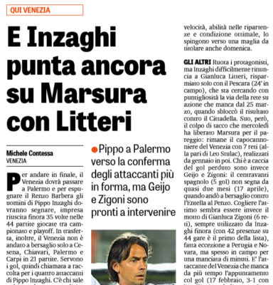 In vista della semifinale di ritorno tra Venezia e Palermo valida per i play off di serie B, il quotidiano...