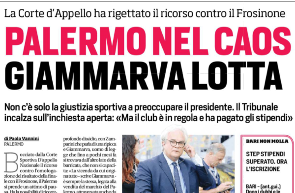 "Bocciato dalla Corte Sportiva D'appello Nazionale il ricorso contro l'omologazione del risultato della finale con il Frosinone, il Palermo si...