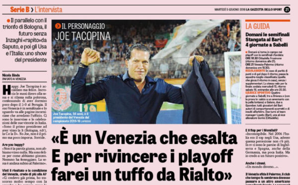 L'edizione odierna de "La Gazzetta dello Sport" ha intervistato Joe Tacopina, i quale si è espresso in merito a Frank...