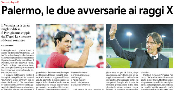L'edizione odierna de "La Repubblica" analizza ai raggi x Venezia e Perugia, una delle due squadre sarà l'avversaria del Palermo...
