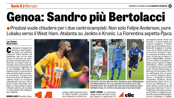 L'edizione odierna de "La Gazzetta dello Sport" riporta tutti i movimenti più rilevanti di calciomercato che riguardano la serie A:...