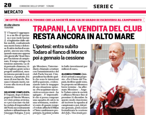 "Il Trapani è aggrappato a un filo di speranza e non vuole lasciarsi inghiottire dalle sabbie mobili, combattendo una morte...
