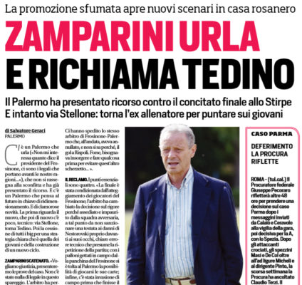 "Un retroscena? Proprio Tedino venne contattato da Zamparini, alla vigilia di Venezia, nell'ipotesi di sostituire Stellone che aveva messo in...