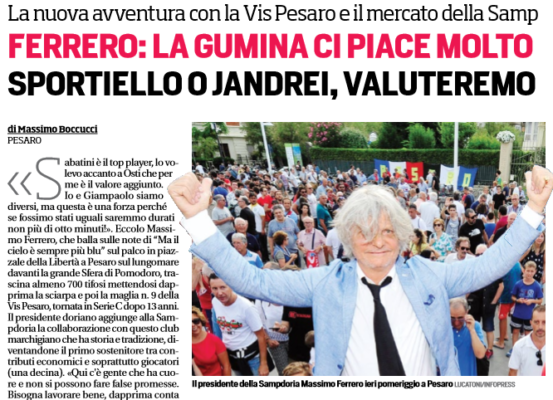 Il patron della Sampdoria Massimo Ferrero esce allo scoperto e parla della trattativa per Nino La Gumina dicendo: «Ci interessa,...