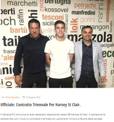 "Il Venezia FC comunica di aver tesserato l’attaccante classe ’98 Harvey St Clair. Il calciatore ha sottoscritto con il club...