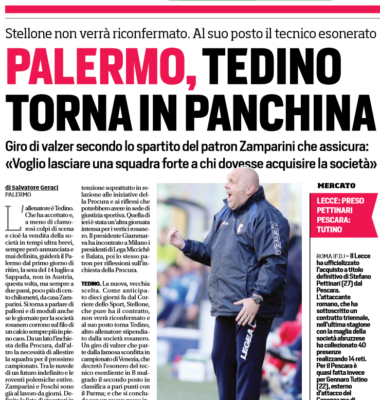 "L'allenatore è Tedino. Che ha accettato e, a meno di clamorosi colpi di scena e cioè la vendita della società...