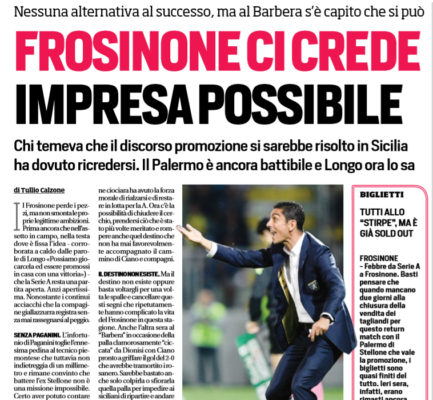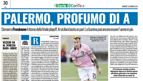 Tuttosport: “Palermo, profumo di A. Domani a Frosinone il ritorno della finale playoff. Ai siciliani basta un pari: La Gumina può ancora essere l’uomo in più”