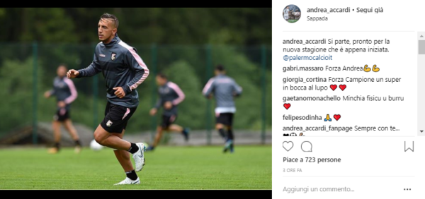Il difensore rosanero, Andrea Accardi, ha pubblicato una foto sul proprio profilo Instagram scrivendo "Si parte, pronto per la nuova...