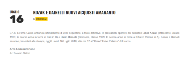 "L’A.S. Livorno Calcio annuncia ufficialmente di aver acquistato, a titolo definitivo, le prestazioni sportive dei calciatori Libor Kozak (attaccante, classe 1989, lo...