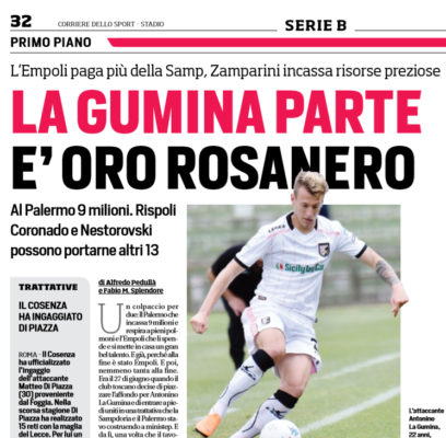 Nella giornata di ieri il Palermo ha ceduto La Gumina all'Empoli per 9 milioni di euro. I rosanero con la...