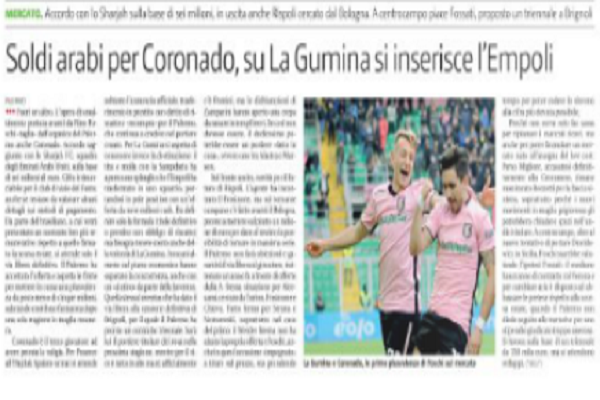 "Fuori un altro. L'opera di smaltimento portata avanti da Rino Foschi taglia, dall'organico del Palermo anche Coronado. Accordo raggiunto con...