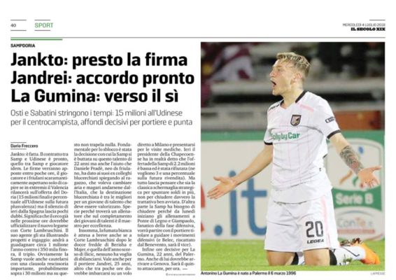 "Ore decisive per La Gumina del Palermo - scrive l'edizione odierna de "Il Secolo XIX" - l'attaccante ha detto si...