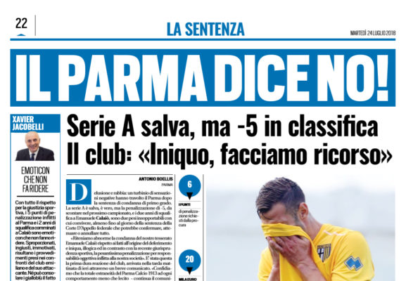 "Delusione e rabbia: un turbinio di sensazioni negative hanno travolto il Parma dopo la sentenza di condanna di primo grado....