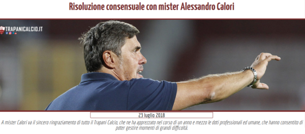 Il Trapani calcio annuncia, tramite il proprio sito ufficiale, di aver rescisso il contratto con il mister Alessandro Calori. Di...