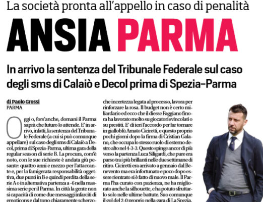 "Oggi o, forse anche, domani il Parma saprà che futuro lo attende. E' in arrivo, infatti, la sentenza del Tribunale...