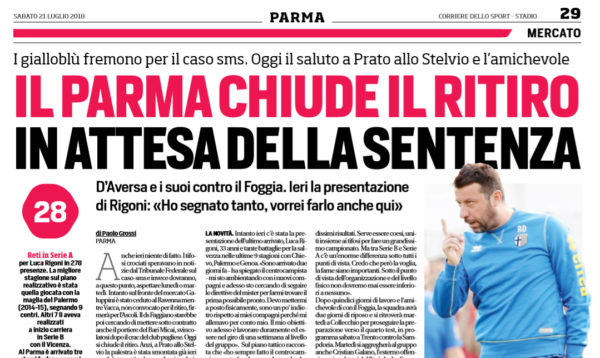 "«Il rischio c’è: assistere all’assurdità di un club, il Parma, penalizzato a vantaggio di un altro club, il Palermo, che...