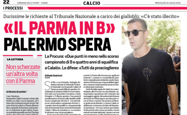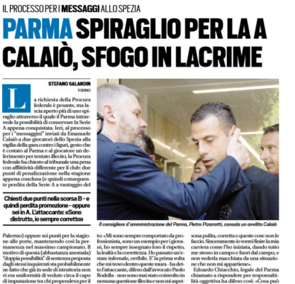 "Sul filo e con il brivido. Battaglia durissima davanti al Tribunale Federale Nazionale con Emanuele Calaiò e il Parma accusati...