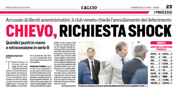 Trema il Chievo e il Crotone vede un raggio di sole. Serie A a rischio per il club veneto. La...