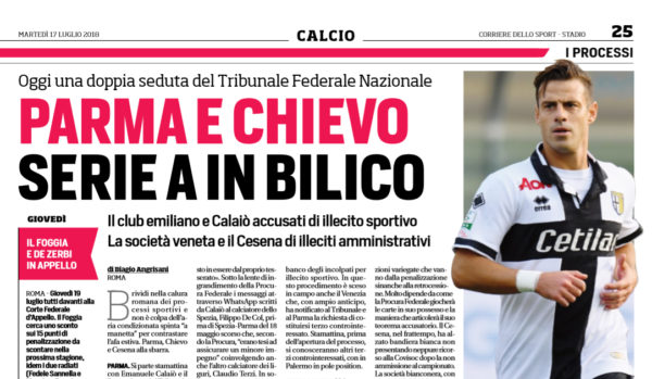 Corriere dello Sport: “Parma e Chievo, serie A in bilico. Oggi inizia la battaglia legale, le ultime”