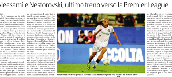 Giornale di Sicilia: “Aleesami e Nestorovski, ultimo treno verso la Premier League”