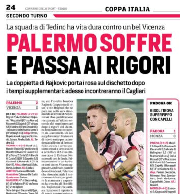 Giornale di Sicilia: “Palermo salvato da Rajkovic. Vicenza piegato solo ai rigori”