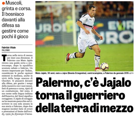 "Torna il guerriero della terra di mezzo", scrive l'edizione odierna de "La Gazzetta dello Sport" in riferimento a Mato Jajalo,...
