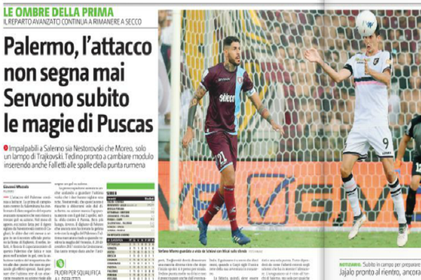 L'edizione odierna de "Il Giornale di Sicilia" ha analizzato la poca produttività dell'attacco del Palermo, che ripone tutte le sue...