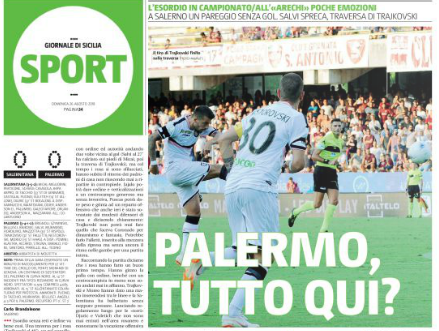 L'edizione odierna de "Il Giornale di Sicilia" ha analizzato l'esordio in campionato del Palermo che ieri ha pareggiato contro la...