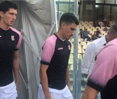 Il profilo ufficiale del Palermo pubblica un video su Instagram che mostra l'ingresso in campo allo stadio "Arechi" per il...