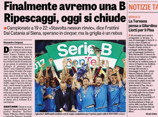 Gazzetta dello Sport: “Finalmente avremo una B. Ripescaggi, oggi si chiude”