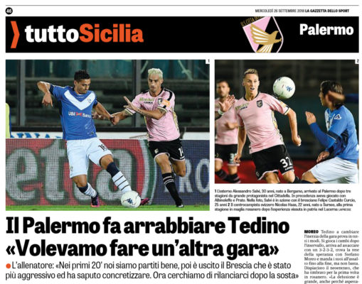 Gazzetta dello Sport: “Il Palermo fa arrabbiare Tedino «Volevamo fare un’altra gara»”