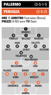 In alto le probabili formazioni di Palermo-Perugia; in basso le panchine delle due squadre secondo la "Gazzetta dello Sport": PANCHINA...