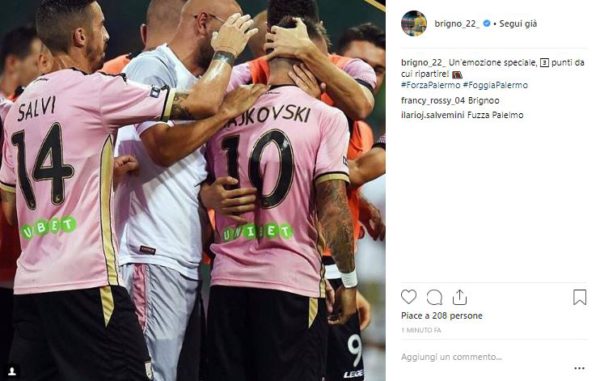Il terzino rosanero Antonino Mazzotta esulta per la prima vittoria stagionale della sua squadra e lo fa tramite il proprio...