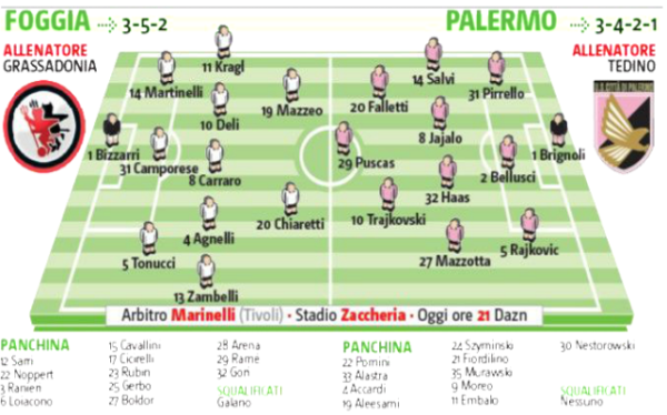 L'edizione odierna de "Il Giornale di Sicilia" ha stilato le probabili formazioni del match in programma questa sera tra Foggia...