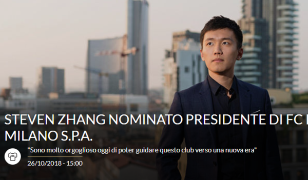 Attraverso una nota apparsa sul proprio sito ufficiale, l'Inter ha reso noto che Steven Zhang è stato nominato oggi nuovo Presidente...