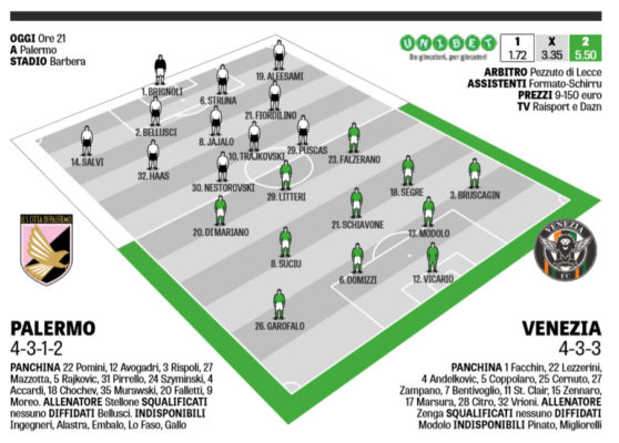 Questa sera alle ore 21 Palermo e Venezia si affronteranno per la 9^ giornata del campionato cadetto. In alto le...