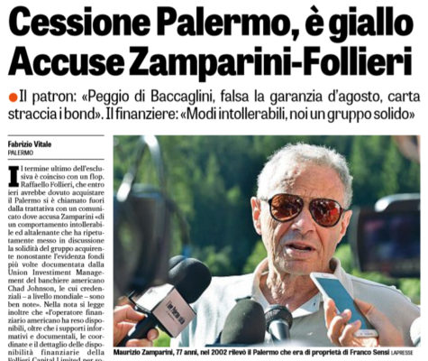 "E Zamparini poi ricostruisce la vicenda. «Il giorno 3-10-2018 veniva accettata una lettera di manifestazione di interesse cui venivano allegati...