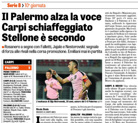"La durissima legge del Palermo si abbatte sul povero Carpi, povero di idee, di qualità e anche astuzia se è...