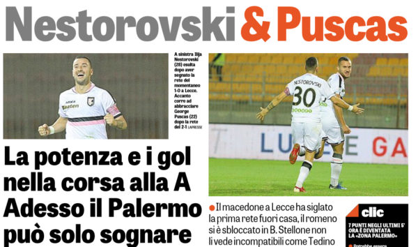 Gazzetta dello Sport: “Nestorovski&Puscas. Adesso il Palermo può solo sognare”