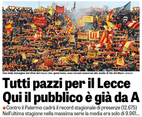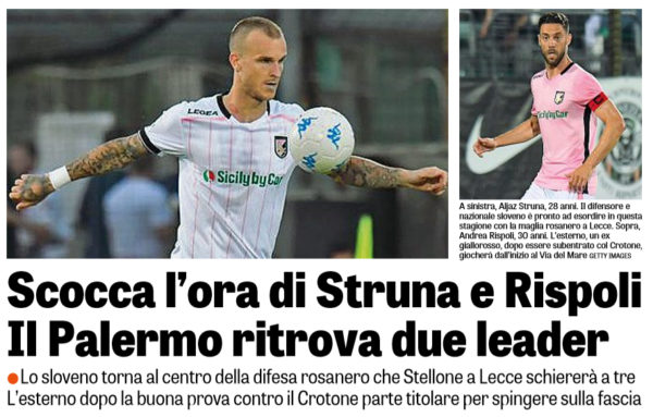 L'edizione odierna de "La Gazzetta dello Sport"ha deciso di parlare della gara tra Lecce e Palermo, sfida in programma domani...
