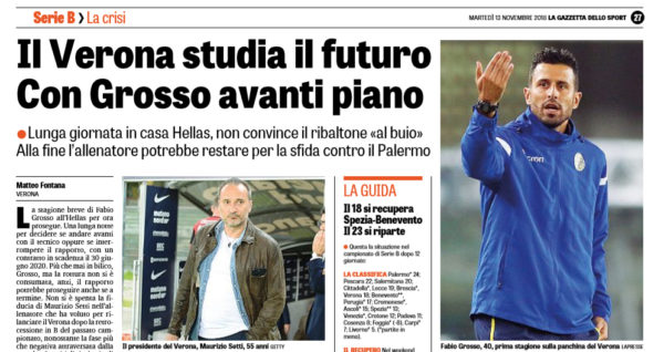 L'edizione odierna de "La Gazzetta dello Sport" ha parlato della questione legata alla possibile permanenza di Fabio Grosso sulla panchina...