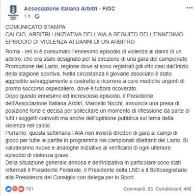 Ennesima aggressione ad un arbitro avvenuto nelle categorie inferiori. Questa volta l'episodio è avvenuto nel campionato di Promozione laziale, il...
