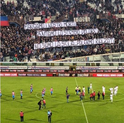 Durante la partita tra Catania e Siracusa, recupero della 2a giornata di Serie C - Girone C, la Curva Nord...