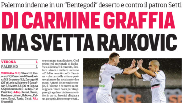 L'edizione odierna de "Il Giornale di Sicilia" ha analizzato il pari di ieri tra il Palermo e l'Hellas Verona. Ecco...