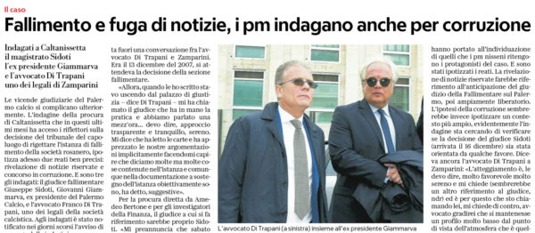 L'edizione odierna de "La Repubblica" ha deciso di riportare le ultime notizie che le vicende giudiziarie che coinvolgono il Palermo...